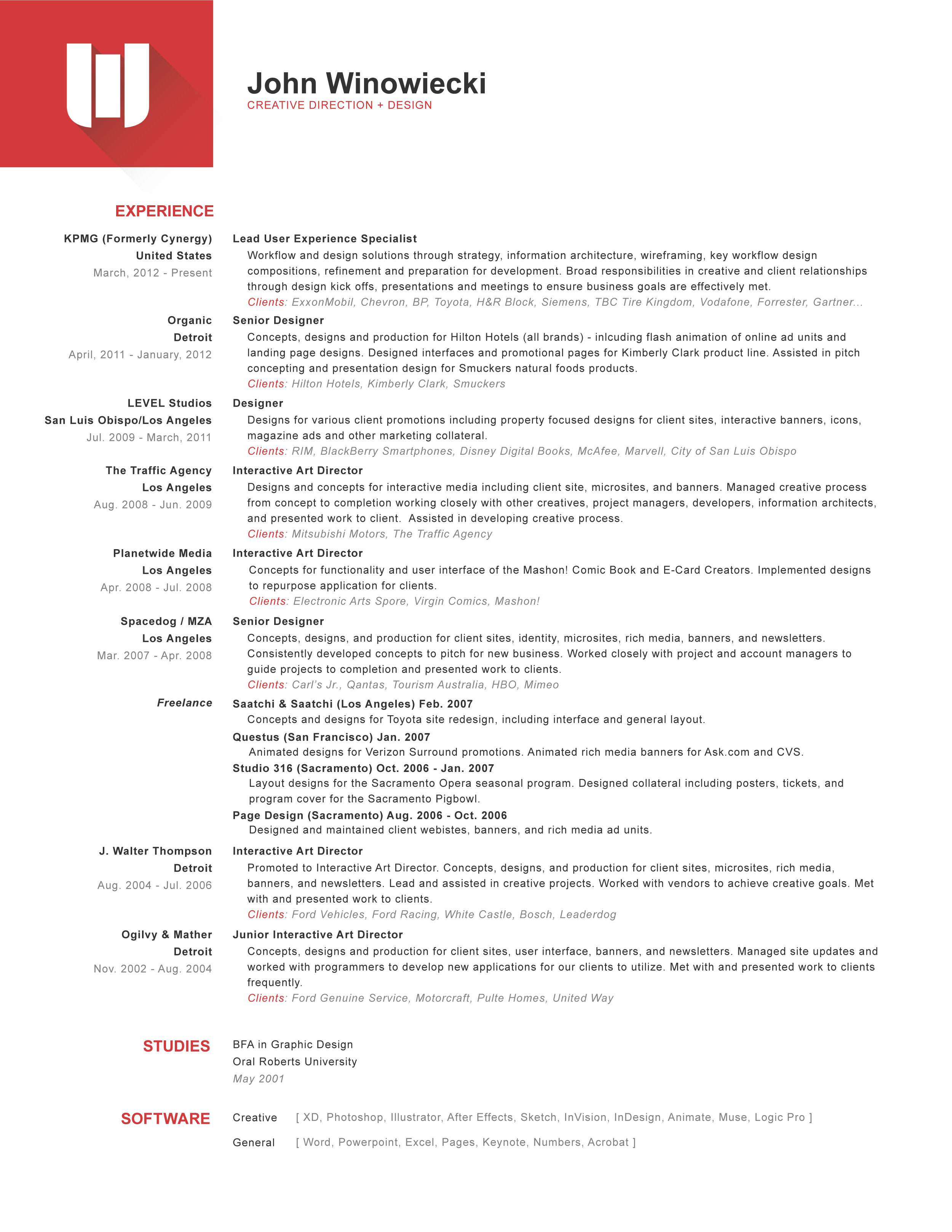 I lead teams through the creative process, producing quality digital experiences on time and successfully achieving business goals as a result. I guide teams through creative workshops to identify opportunities, map efforts, and inform planning towards business goals that effectively meet user needs. I craft visionary experiences for enterprise software, supporting the needs of Fortune 500 companies across a wide array of industries. I work to see fruitful returns on successful projects, watching efforts surprising unfold into greater opportunities. Even across industries and with new clients. I foster and strengthen relationships, also retaining clients and opportunities through our teams acquisition in 2014. I worked on location with teams in our London, England offices shortly after our acquisition to guide them in learning our processes and building out a similar team. They have since been growing steadily, providing quality services and solutions to their clients.